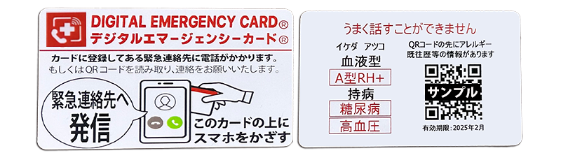 スマホにかざすだけで緊急連絡先に発信!!